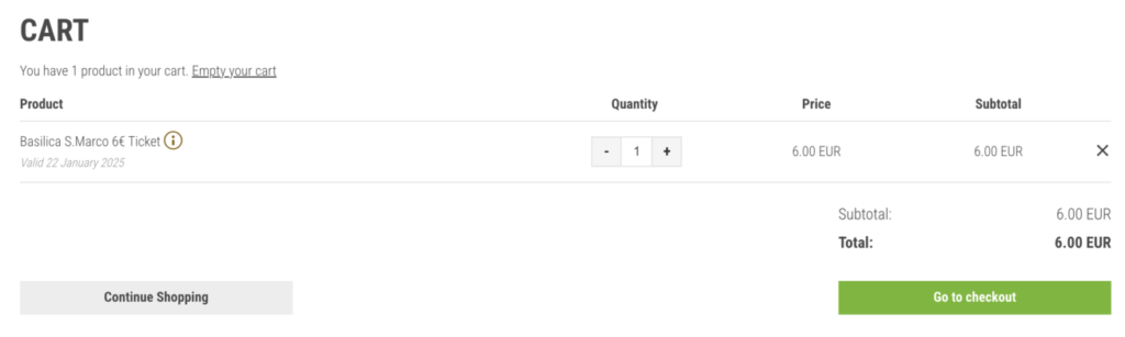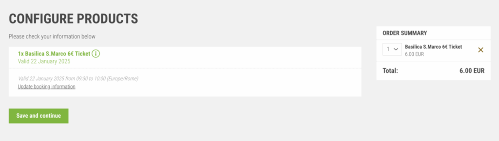 これでサンマルコ寺院の事前チケット予約は完了です。