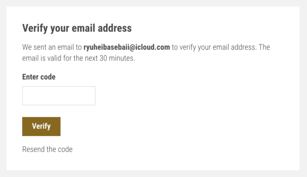 登録したメールアドレス宛にコードが届くので、そちらをコピーしてこちらに貼り付けて、Verifyボタンをクリック